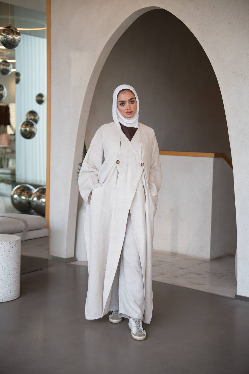 Shine with an elegant look with this practical set in light and cool linen, consisting of a beige dress with an inner set. Coordinating the inner set with the dress and the combination of the inner color with the beige color adds a beautiful touch to the set. The design of the set is practical and elegant, so it is ideal for outings, work and travel. The dress is free size and you can choose the length according to your request. The inner set is available in all sizes. (The price is for the dress with the inner set)