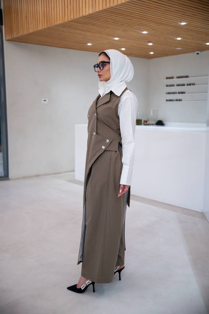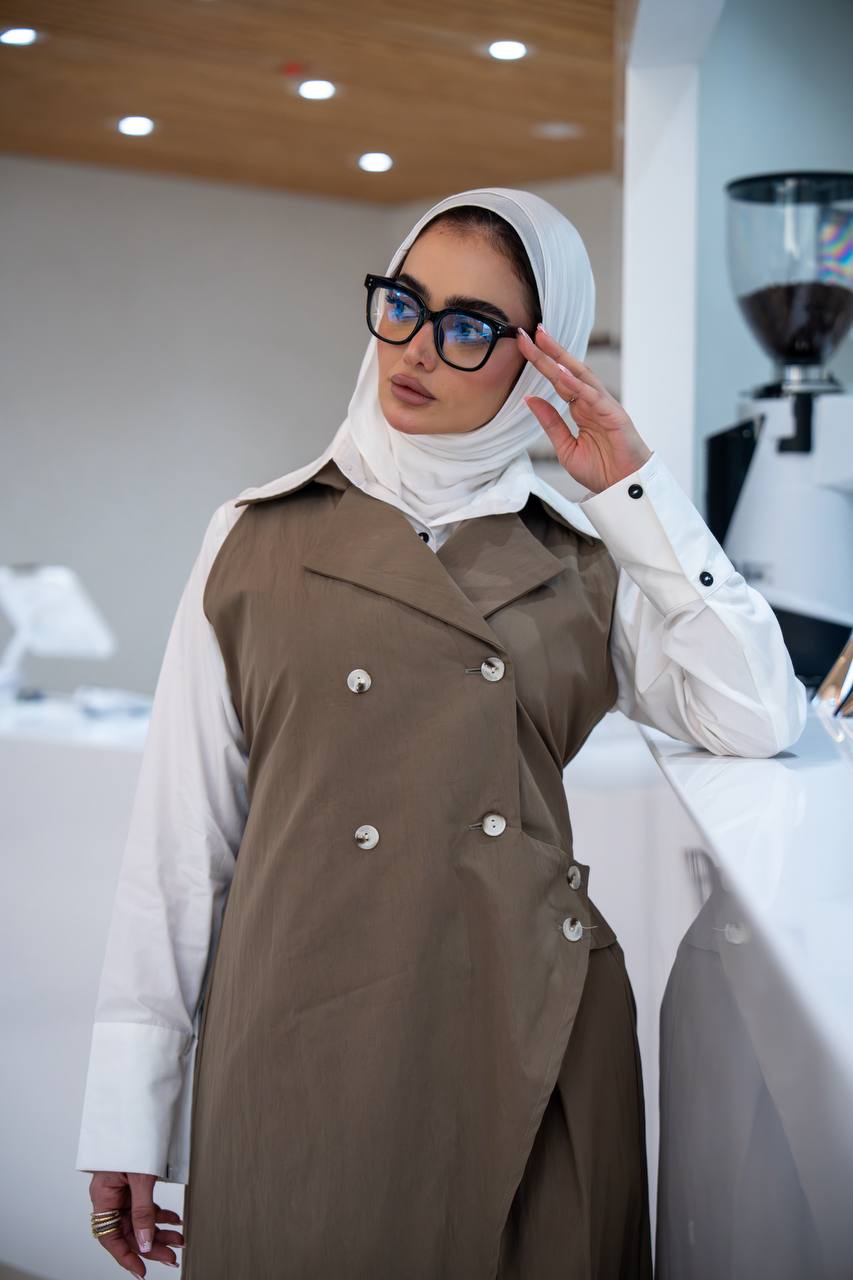 Shine with a distinctive look with this elegant and practical 3-piece set: a jacket and brown trench coat pants with a white cotton Zara shirt. The design combines comfort and elegance, making it ideal for work, university, and outings. The set is available in all sizes. * Price is for the jacket, pants, and shirt.