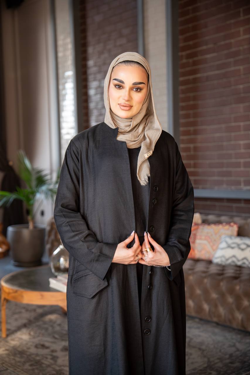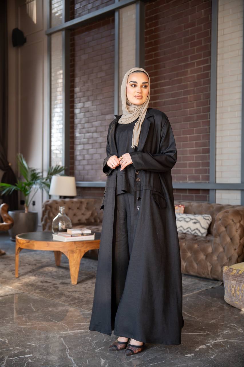 An elegant and practical vest made from the finest types of luxurious linen raw material in an attractive black color with a design that combines elegance and sophistication, making it a distinctive piece and ideal for different tastes. The cut of the vest is practical and elegant, suitable for outings, daily outings and all times so that you are in full elegance, so do not hesitate to buy it. The vest is available in all sizes and lengths according to your request. (The price is for the vest only and does not include the underwear)