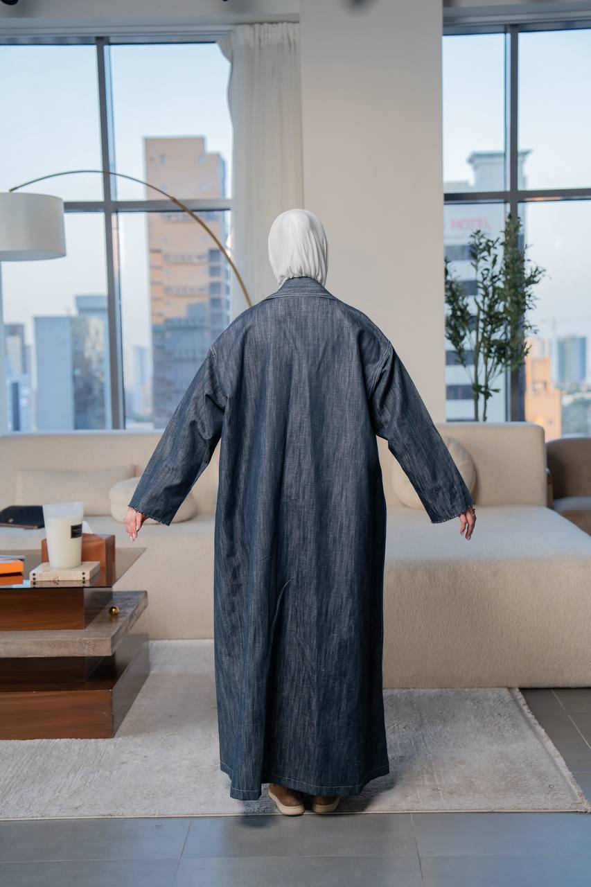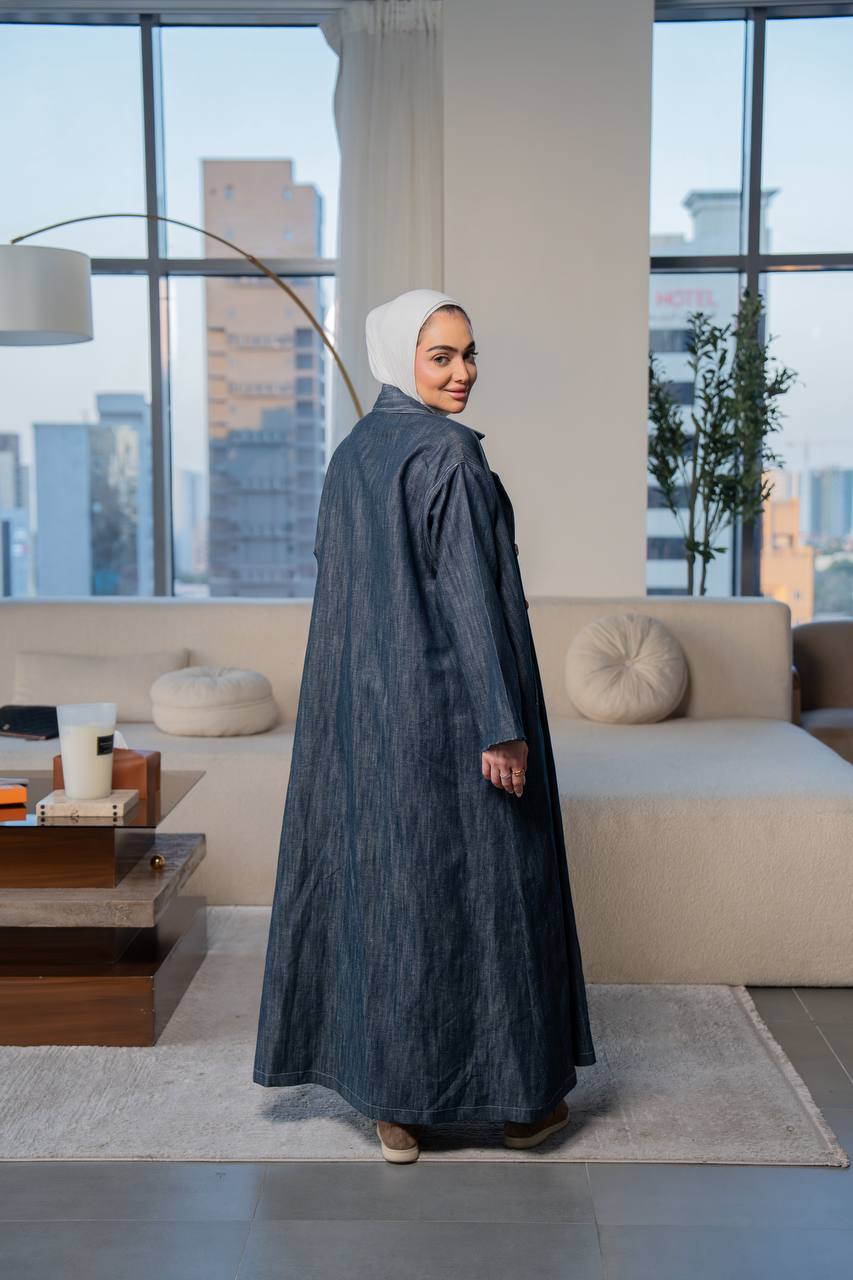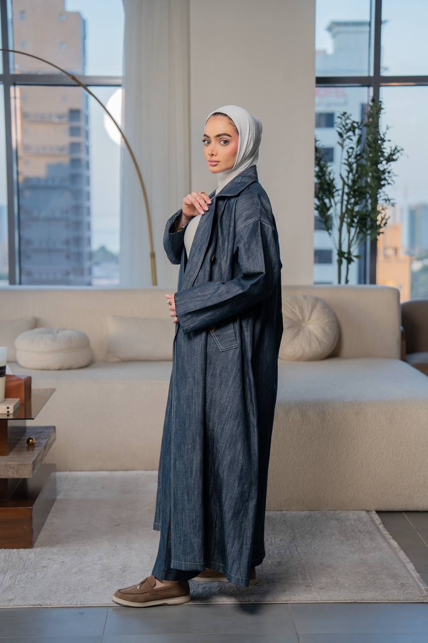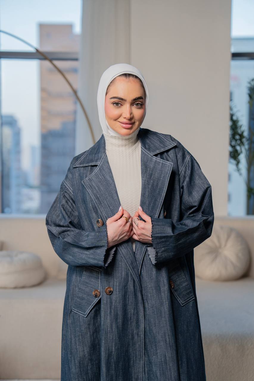 Shine with a sophisticated look with this distinctive denim trench coat, featuring an elegant and practical design that combines luxury and comfort. The trench coat design is comfortable and elegant, making it ideal for work, outings, and university. Available in all sizes and lengths upon your request. (The price is for the trench coat only and does not include the inner set.)